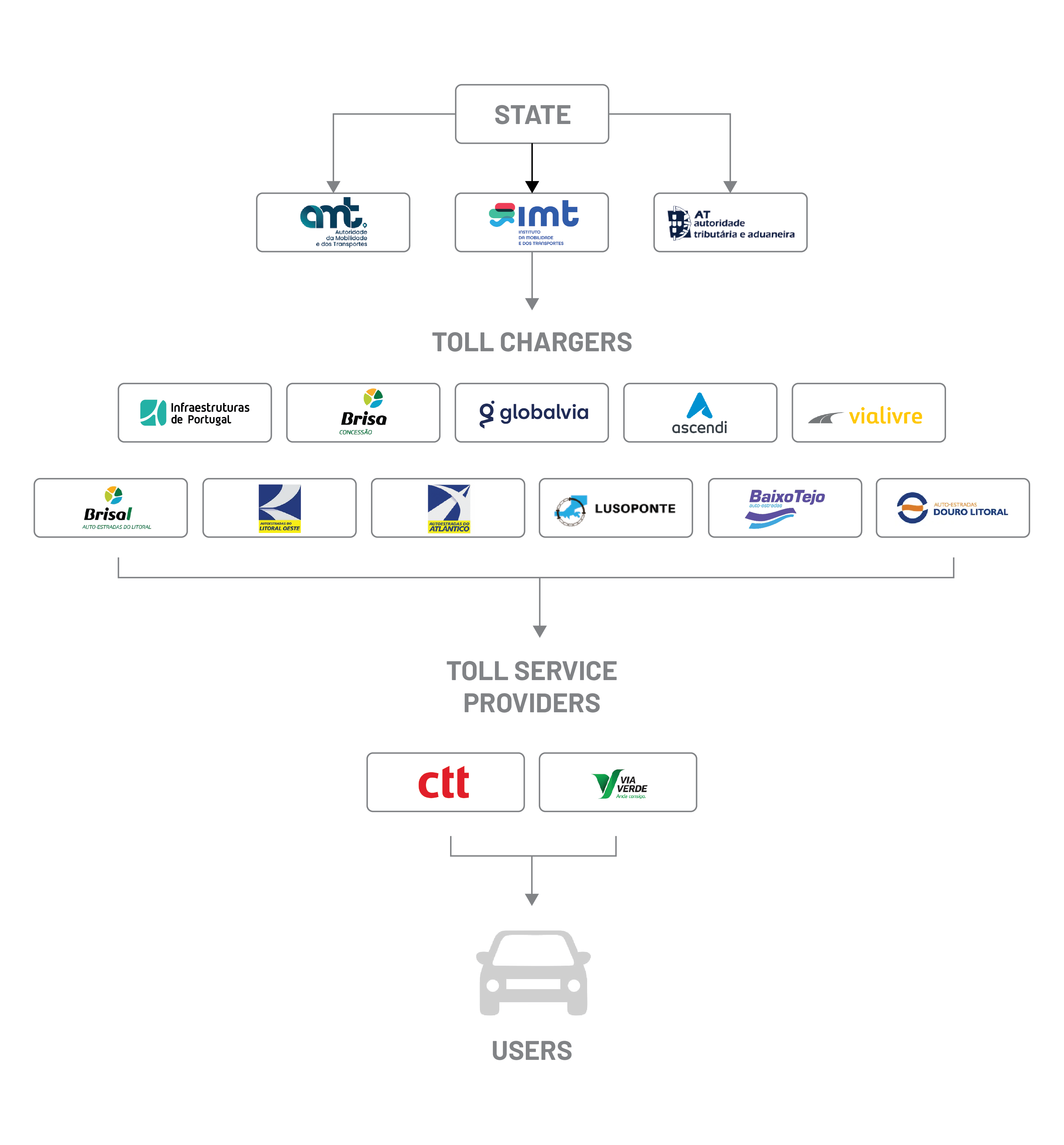 Public or private entities responsible for toll collection, including concessionaires, IP sub-concessionaires and operators contracted to operate and maintain toll collection systems.